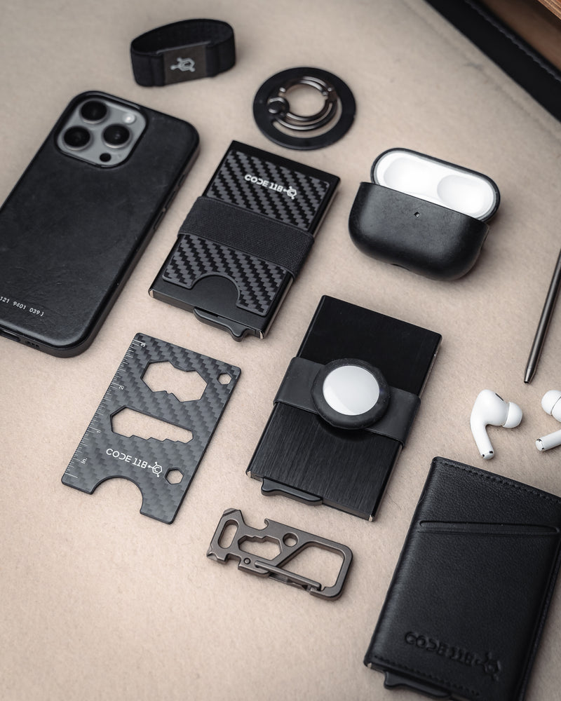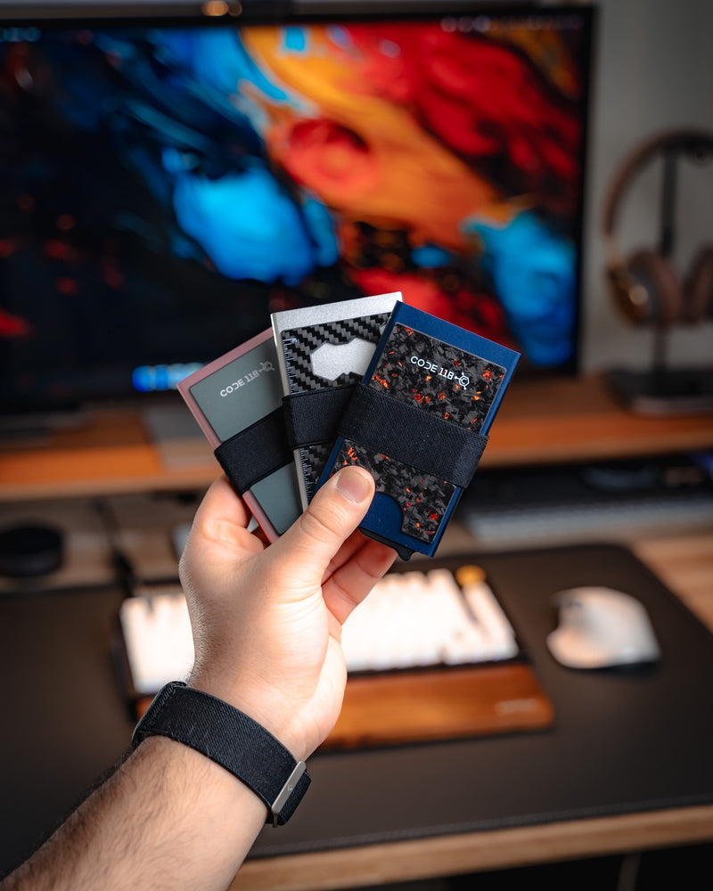 The CODE 118 WALLET is the perfect wallet. It holds everything you need and then some, all in a compact yet practical design. Looks and feels great in the hands and always gets a ton of looks. The fact that it's made from aerospace-grade aluminum and genuine carbon fiber is icing on the cake!